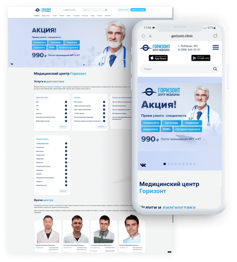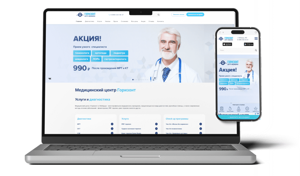 В структуру будущего сайта мы заложили страницы, которые особенно полезны для пациентов - диагностика МРТ, КТ, УЗИ, направления врачебной помощи, лабораторные анализы.