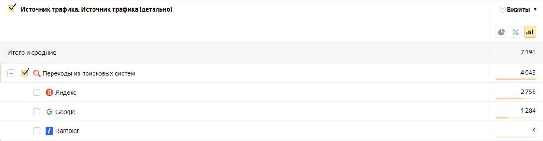 SEO трафик и обращения с SEO можно рассматривать с нескольких сторон. Обычно SEO трафик анализируют по Яндекс/Google метрике как общее количество трафика и обращений.
