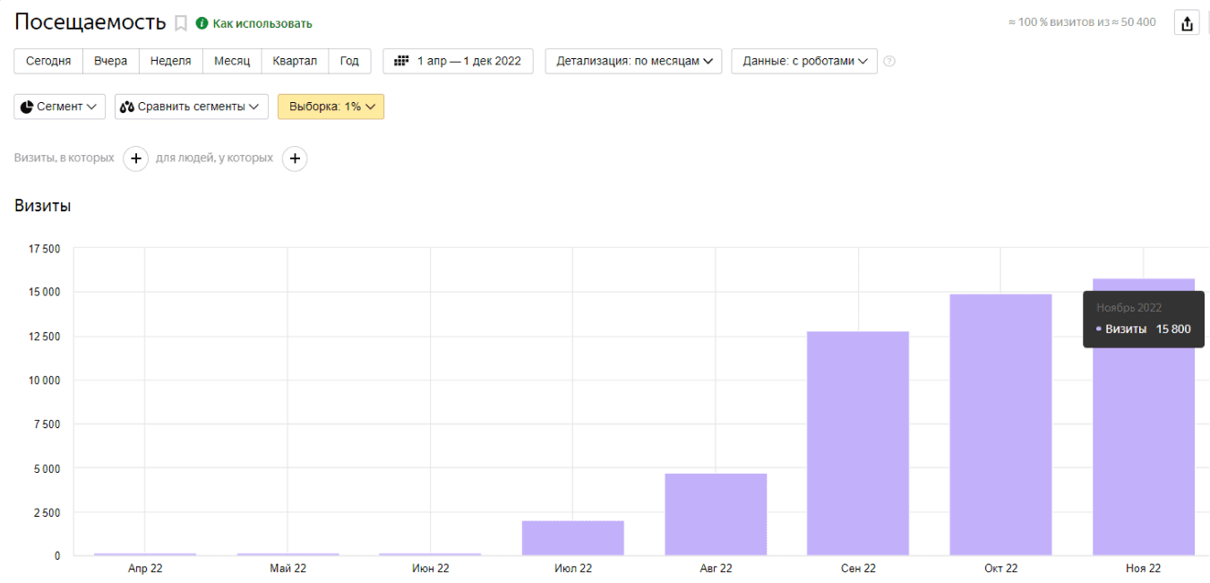 Трафик на сайте вырос с 2000 до 15800 пользователей.