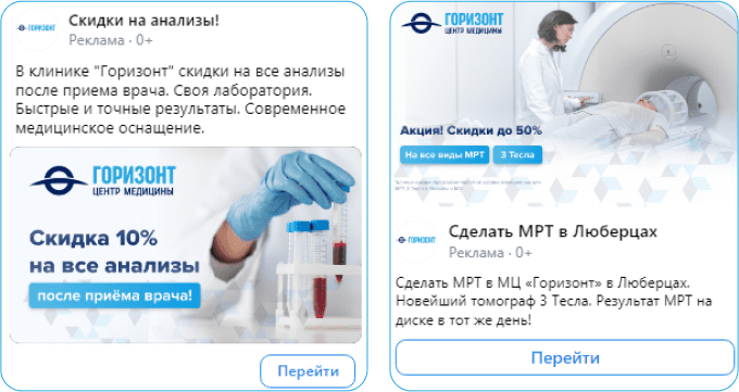 Таргетированная реклама медицинской клиники или центра - это рекламные объявления, которые транслируются пользователям соцсетей в ленте или сторис. Например, пользователь листает ленту инстаграма, видит релевантное рекламное объявление клиники и попадает на сайт, где оставляет заявку, звонит или пишет в мессенджере.